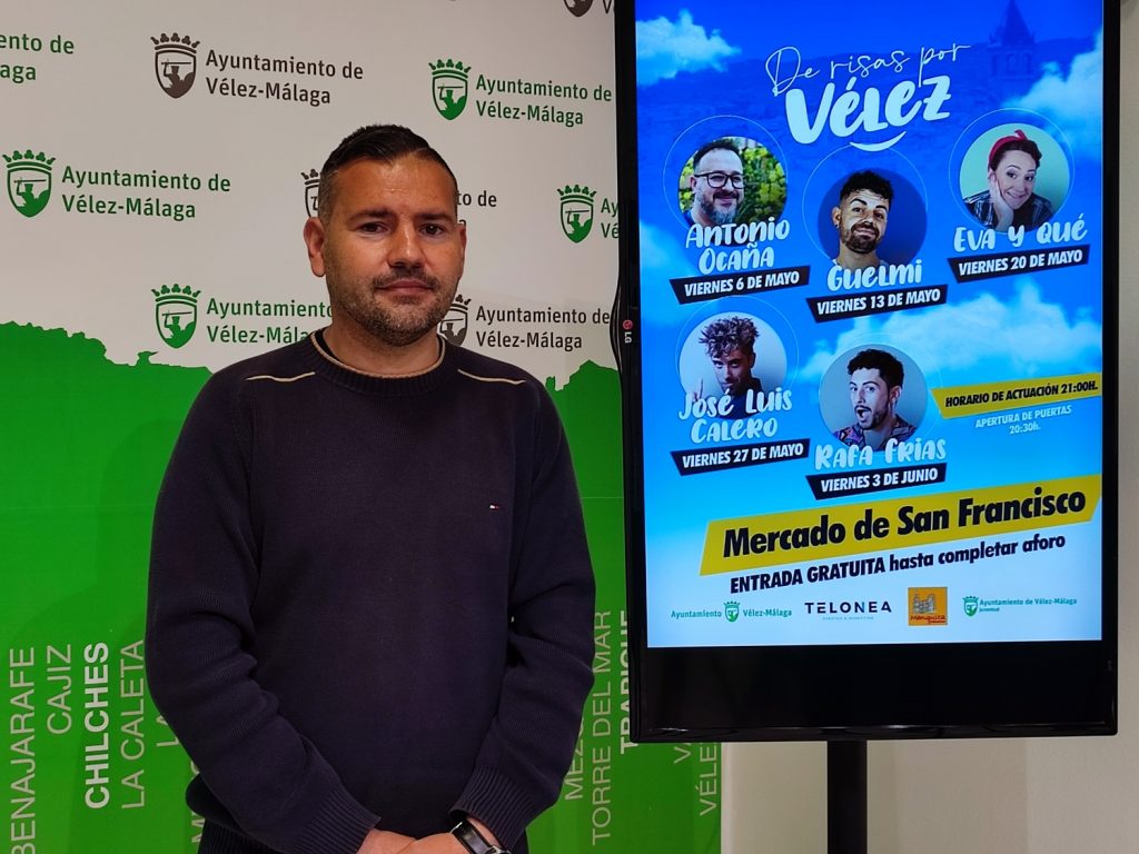 El Ayuntamiento de Vélez-Málaga, a través del área de Juventud, organiza un ciclo de monólogos denominado ‘De risas por Vélez’, que contará con destacados monologuistas. La iniciativa se llevará a cabo en el Mercado de San Francisco todos los viernes del 6 de mayo al 3 de junio, a las 21.00 horas; según explicó el concejal de Juventud, J. Hipólito Gómez.