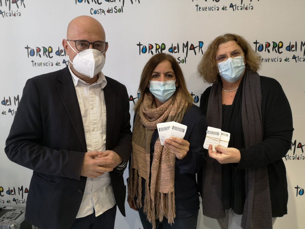 El primer teniente de alcalde del Ayuntamiento de Vélez-Málaga, Jesús Pérez Atencia, y la concejala de EMVIPSA, Belén Zapata, han hecho entrega en la mañana de este martes de un millar de tíckets de aparcamiento gratuito a la Asociación de Comerciantes y Empresarios de Torre del Mar (ACET) y también a la Asociación de Comerciantes y Empresarios de Vélez-Málaga (ACEV), que se repartirán entre los comercios para que puedan llegar a los clientes de los mismos.