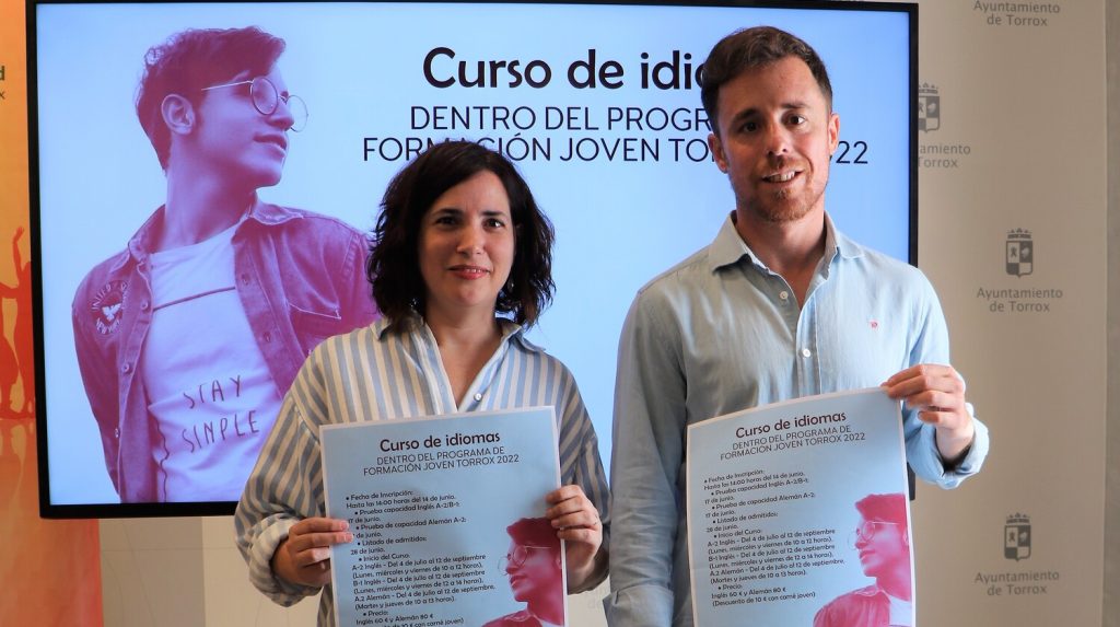 El Ayuntamiento de Torrox, a través de la Concejalía de Juventud, oferta la tercera edición de los Cursos de Idiomas. José Manuel Fernández, concejal responsable del área, junto a María Nieves Bravo, la directora de la academia responsable de impartirlos, Idiomas Torrox, anunciaban la apertura de plazo de inscripciones, que podrán entregarse hasta el 14 de junio.