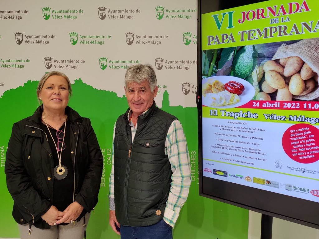 El núcleo veleño de El Trapiche se prepara para celebrar la ‘VI Jornada de la papa temprana’, un evento que une tradición, arte, cultura, gastronomía y que contará con la actuación de Séfora, Tomate y Polvorín, además de la participación del artista Antonio Cortés y cuya celebración tendrá lugar el próximo 24 de abril a partir de las 11.00 horas en la plaza de la Tenencia de Alcaldía de Trapiche; según explicaron la concejala delegada de Trapiche, Lola Gámez, y el presidente de la Asociación Amigos de El Trapiche, Antonio Gil.