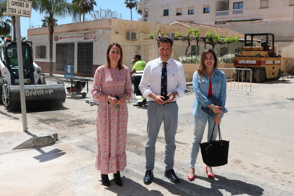 El alcalde, Óscar Medina, junto a la teniente de alcalde de El Morche, María de los Ángeles Ruiz, y la edil de Contratación, Paula Moreno, visitaron la zona de la calle del Mar donde ha dado comienzo esta primera fase.