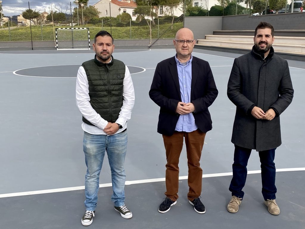 Por su parte, David Segura detalló que “las principales actuaciones se han centrado en la renovación del pavimento de la pista de fútbol sala y que ha sido separada de la de basket, ya que, anteriormente la persona que jugaba al sala no podía hacerlo al basket, y la persona que jugaba al basket no podía hacerlo al sala. Una vez realizadas estas mejoras se ha creado una pista de Mini Basktet, casi única en el municipio de Vélez-Málaga, y que viene a cumplir con las demandas de una gran cantidad de vecinos y vecinas de nuestro pueblo”. Además tenemos que destacar “las mejoras del propio entorno del polideportivo con la instalación de césped artificial dentro de las instalaciones y tenemos prevista para el año próximo con el acristalamiento de la pista de pádel”, añadió Segura.