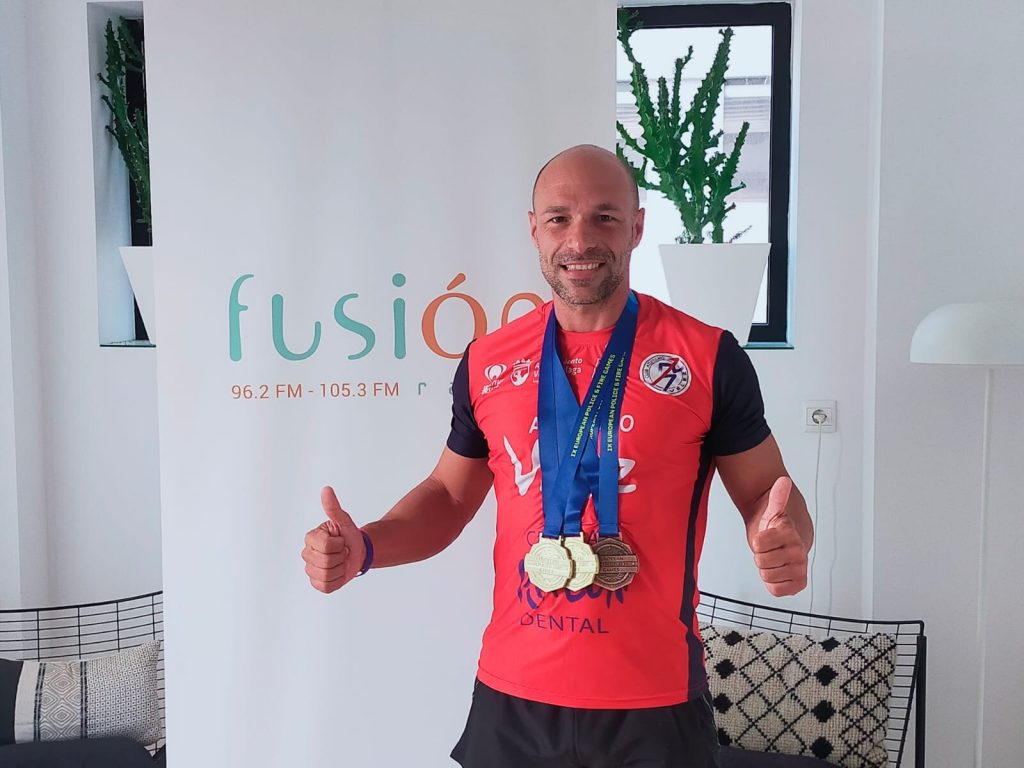 Hoy hemos tenido en DePrimera a Domingo Lozano, ha triunfado en los Campeonatos de Europa de Policías y Bomberos disputado en la localidad alicantina de Torrevieja. Domingo, representando a la Policía Local de Nerja, se ha colgado 3 medallas. Dos de ellas de oro, en 200 metros (24:50) y en lanzamiento de martillo (40 metros y 14 cm) y un bronce en 100 metros (12.05).
