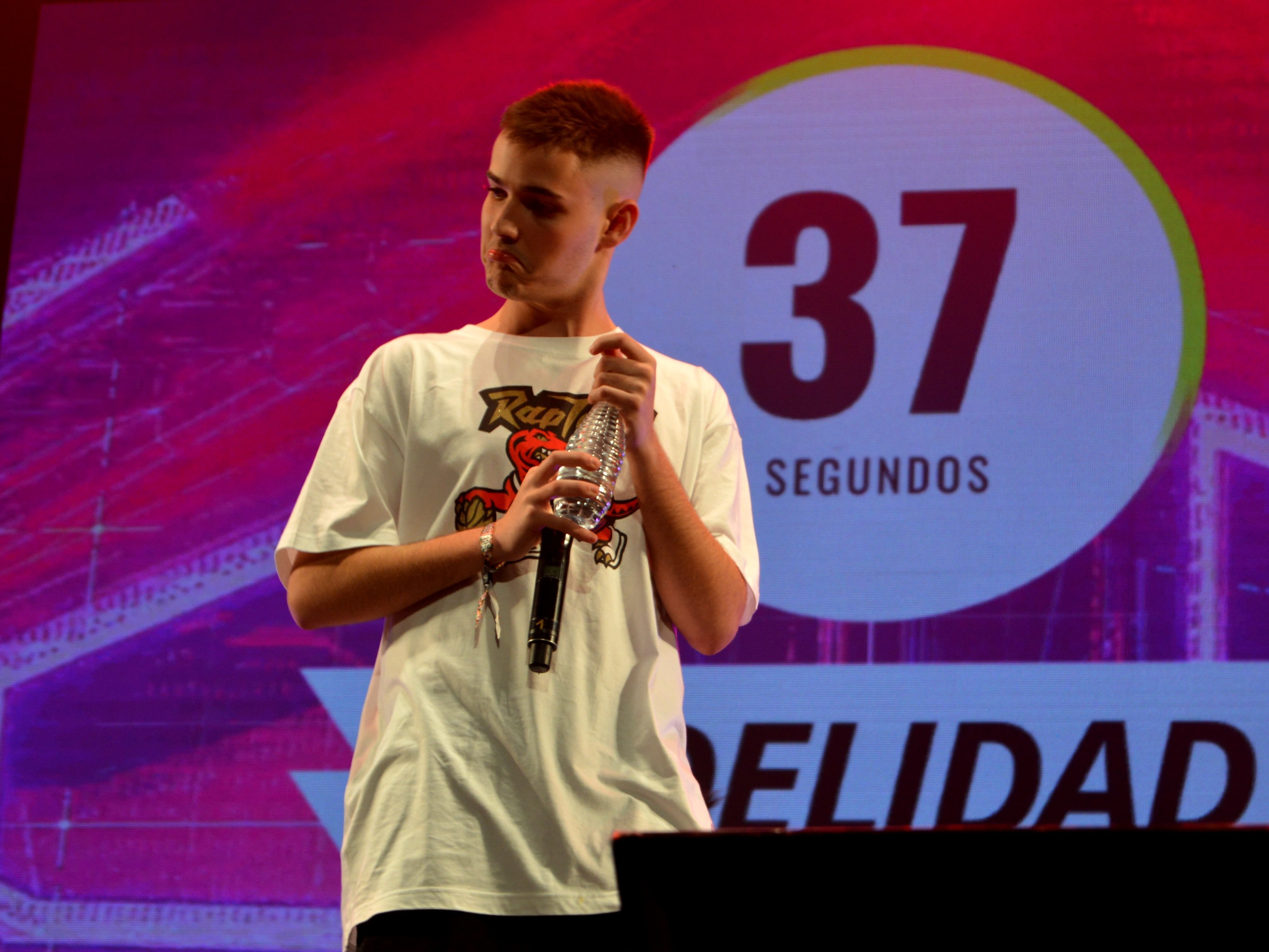Comenzamos con la primera batalla de la tarde, Skone (2) vs Walls (6), una batalla en las que ambos no se jugaban nada. Fue un enfrentamiento en el que nos encontramos con dos choques generacionales: Skone representando la vieja escuela y Walls demostrando que es una promesa consagrada. Fue un enfrentamiento bastante igualado, en el que se empezó a decantarse más la balanza a partir de los minutos libres. Algo a destacar de esta batalla seria la ronda a temáticas con la palabra “regalo” realizada por Walls, una clara demostración del ingenio y de la multiplicidad de recursos que se pueden emplear para una sola temática. Y por otra parte también destacar la puesta en escena, la adaptabilidad y el “ingenio canalla” de Skone, demostrando una vez más porque está entre los tres mejores del mundo. Finalmente la batalla se decantó para Skone.