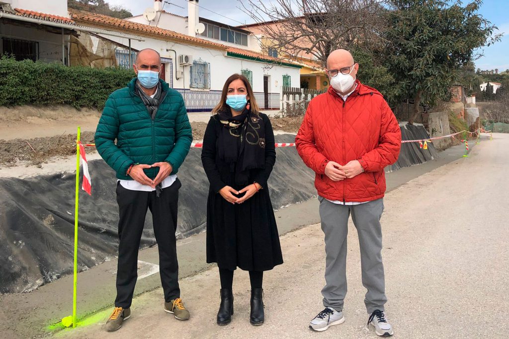 El primer teniente de alcalde del municipio de Vélez-Málaga, Jesús Pérez Atencia; el concejal de Infraestructuras, Juan García; y la teniente de alcalde de Almayate, Belén Zapata, han informado en la mañana de este martes del inicio de las obras para la desafectación del Camino de Ribera de las filtraciones provenientes del entorno de Los Toscanos, en la zona de Almayate.