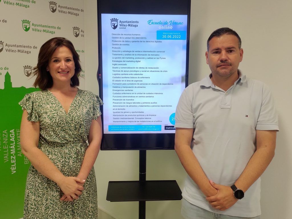 El Ayuntamiento de Vélez-Málaga continúa ofreciendo una amplia oferta formativa compuesta por veintisiete cursos online, a un precio reducido, destinados a favorecer la inserción laboral de los ciudadanos. El concejal de Juventud, J. Hipólito Gómez, acompañado por la gerente de la empresa formativa Matricula 10, Cynthia Díaz, presentó los diferentes cursos disponibles centrados en diferentes temáticas muy demandadas por los jóvenes. Se oferta formación en marketing, sanidad, o inglés, entre otras materias, con las que favorecer la empleabilidad de los participantes.