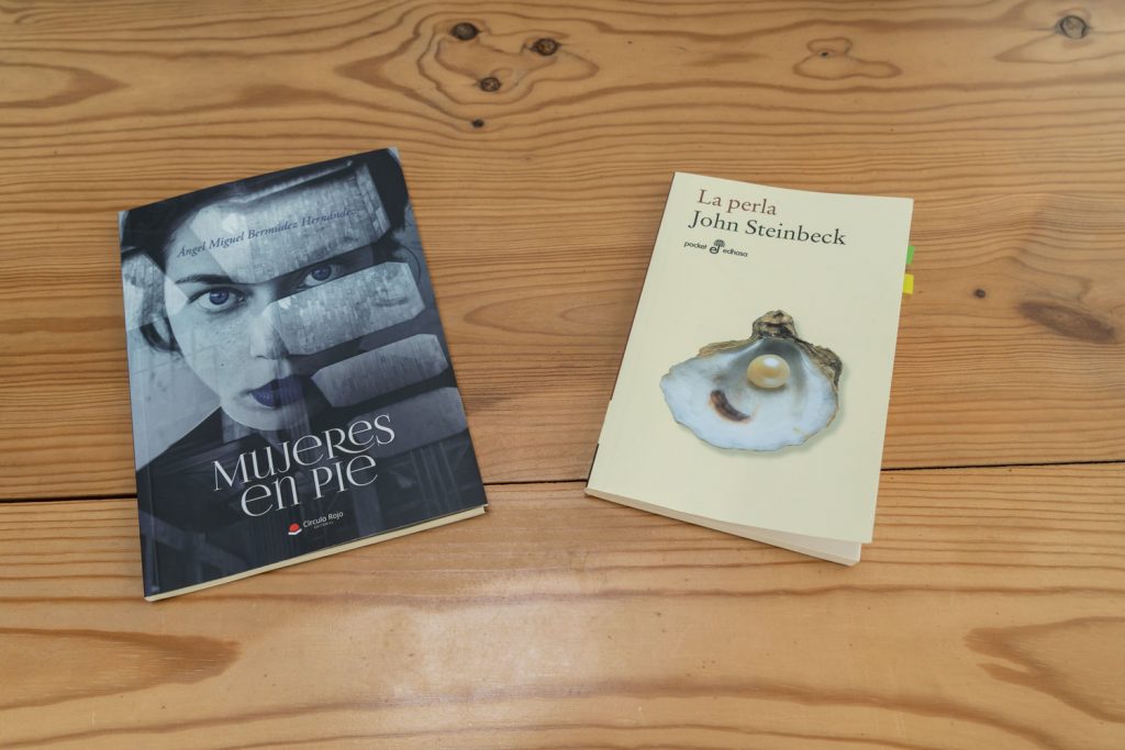 La primera de ellas, «Mujeres en pie» del profesor de biología veleño Ángel Miguel Bermudez, el cual nos trae una serie de relatos sobre la mujer en un ambiente cotidiano.