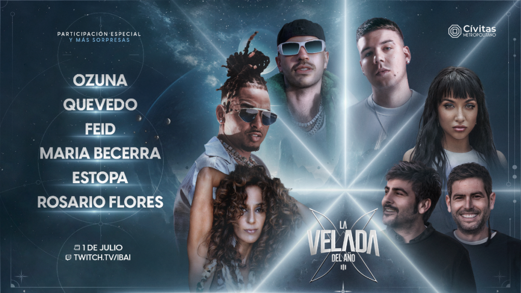 Rosario Flores, Quevedo, Ozuna, Estopa, Feid y María Becerra son algunos de los artistas confirmados que pondrán la nota musical a la esperada tercera edición de La Velada del Año, organizada por Ibai Llanos, que se va a vivir en el Civitas Metropolitano de Madrid el 1 de Julio.