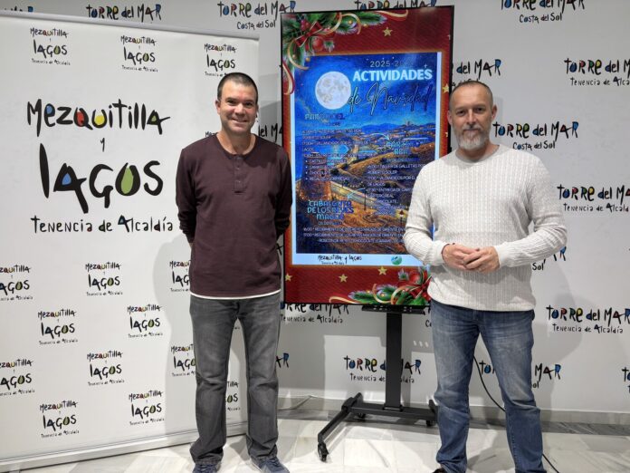 El teniente de alcalde de Mezquitilla y Lagos, David Vilches, y el presidente de la Asociación Bahía de Lagos, Carlos Palacios, han presentado hoy en rueda de prensa la programación de actividades previstas para estas Navidades en ambos núcleos poblacionales, con una agenda pensada especialmente para los más pequeños, pero dirigida a toda la familia.