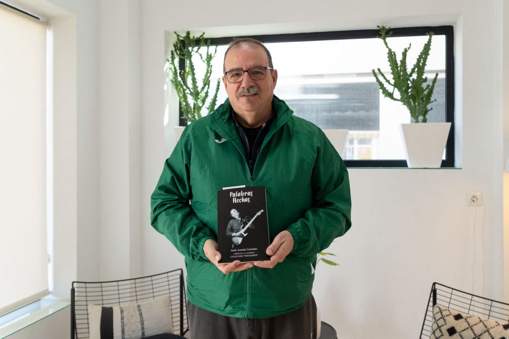 Jesús Aranda, músico, escritor y profesor jubilado nos visita para presentar su nuevo libro titulado «Palabras hechas», compuesto por diferentes poemas, letras de canciones propias e imágenes que acompañan y sirven de apoyo a los diferentes textos.