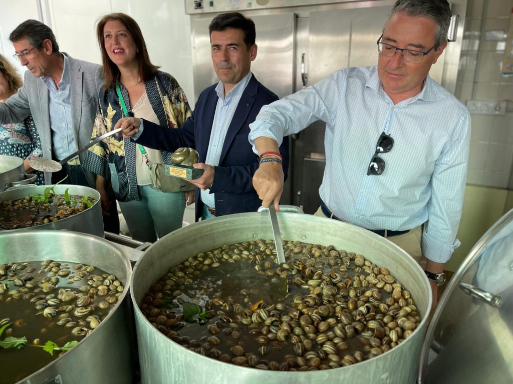 A partir de las 14:00 horas ha comenzado la degustación de estos platos de caracoles cocidos en su propio caldo, con ingredientes como el anís en grano, cáscara de naranja, laurel, guindilla o hierbabuena, acompañados de aceitunas y vinos del terreno.