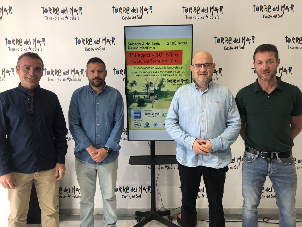 Torre del Mar vuelve a convertirse en sede del mejor deporte del municipio con dos pruebas de nivel, que se celebrarán este próximo 4 de junio en el Paseo Marítimo. El evento lo han presentado este lunes el primer teniente de alcalde de Vélez-Málaga y teniente de alcalde de Torre del Mar, Jesús Pérez Atencia; el concejal de Deportes, Hipólito Gómez; Juan Carlos Gámez, presidente Club Atletismo Vélez Rincón Fertilidad; y Lolo Rincón, miembro de Fundación Rincón. Se trata de la VIII edición de la Legua y XXX Milla Nocturna, que se celebrarán a partir de las 21:00 horas.
