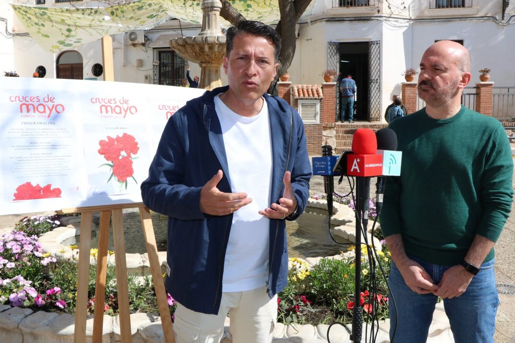 El alcalde de Torrox, Óscar Medina, junto a los concejales de Fiestas y Tradiciones Populares, Salvador Escudero, y de Cultura y Patrimonio, María de los Ángeles Ruiz, han presentado la programación para conmemorar una de las fiestas más importantes del municipio, como son las Cruces de Mayo.