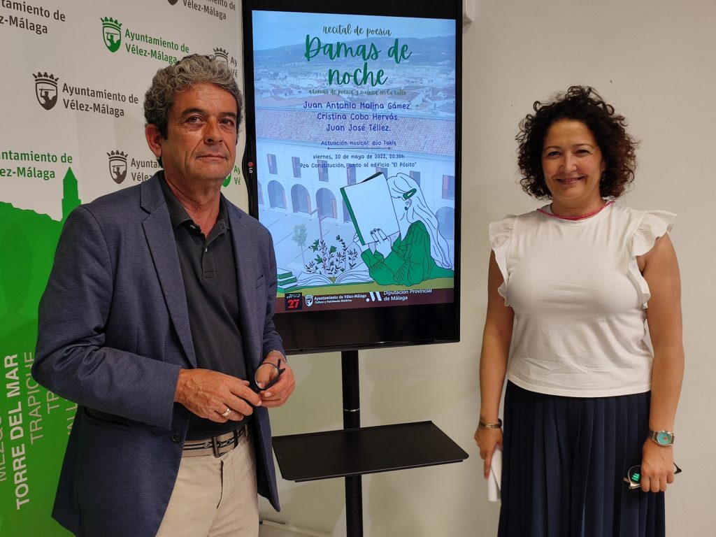 El Ayuntamiento de Vélez-Málaga y el Centro Cultural Generación del 27 organizan una nueva edición de la actividad ‘Damas de noche: Aromas de poesía y Música en la calle’. Este año se realizarán tres eventos siendo el primero de ellos en la plaza de La Constitución el próximo 20 de mayo, a partir de las 20.30 horas; según explicó la concejala de Cultura, Cynthia García, acompañada del director del Centro Cultural Generación del 27, José A. Mesa.