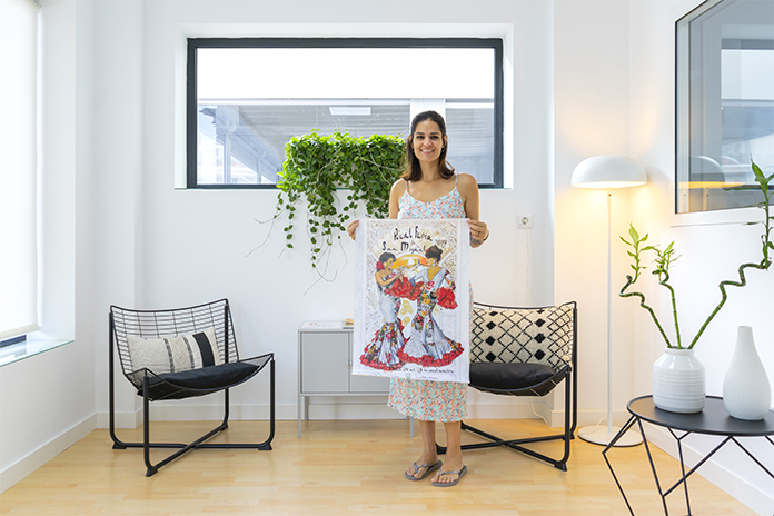 Actualmente es la autora del Cartel de la Real Feria de San Miguel 2019 de Vélez-Málaga. En esta ocasión nos costó el proceso creativo desde el momento en el que recibió la noticia.